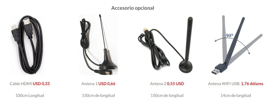 ¿Necesita también piezas opcionales, cable HDMI, antena WIFI, antena de televisión digital?