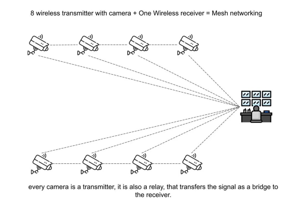 Depending on your project needs, how multiple cameras, transmitters, and one receiver form a network is the prerequisite for providing a solution. Usually there are star networking and mesh networking.