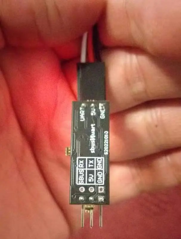这个uart转sbus模块,就是把uart数据(ttl 3.3v,1152008n1)转成sbus信号的。另外,模块的uart一段都是接的我们的TX900